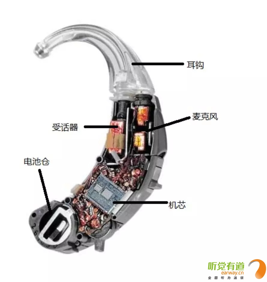 <span style="font-size:16px;"> 在助聽器發展過程中,出現過很多種助聽器,比如:盒式、眼鏡式、耳背式、耳甲腔式、耳道式、深耳道式等定制式助聽器。如今盒式助聽器、眼鏡式助聽器等幾乎已退出歷史舞臺,現在常見的助聽器有耳背式助聽器、定制式助聽器和RIE受話器外置式助聽器。</span></p><p style="text-align: center;"><span style="font-size:16px;"><img src="/upfiles/201808160127045435.jpg" width="640" alt="" /><br /></span></p><p><span style="font-size:16px;"> 接下來,我們將以耳背式助聽器為例,向您介紹助聽器的外部配件及內部構造!</span></p><p><span style="font-size:16px;"> 1、機身內部構造</span></p><p style="text-align: center;"><span style="font-size:16px;"><img src="/upfiles/201808160127276133.jpg" width="640" alt="" /><br /></span></p><p><span style="font-size:16px;"> 麥克風:獲取聲音并將聲音信號轉化為電信號。</span></p><p><span style="font-size:16px;"> 機芯:將電信號進行放大、處理,機芯包含放大器、音量調控電位器、微調電位器等。</span></p><p><span style="font-size:16px;"> 受話器:將電信號轉化為聲音信號,通過導聲管和耳模傳送給耳朵。耳背式助聽器和定制式助聽器的受話器都在機身內;RIE受話器外置式助聽器的受話器放置在耳道中。</span></p><p><span style="font-size:16px;"> 電池倉:用于安放電池來供電,使助聽器正常工作。</span></p><p><span style="font-size:16px;"> 2、電池</span></p><p><span style="font-size:16px;"> 電池放置于電池倉內,給予助聽器能量。市面上常見的助聽器電池分為4類:</span></p><p><span style="font-size:16px;"> A675:一般用于超大功率耳背式助聽器。</span></p><p><span style="font-size:16px;"> A13:一般用于標準耳背式或耳甲腔式助聽器。</span></p><p><span style="font-size:16px;"> A312:一般用于耳道式助聽器。</span></p><p><span style="font-size:16px;"> A10:一般用于深耳道式助聽器。</span></p><p><span style="font-size:16px;"> 電池大小:A675>A13>A312>A10,電池越大,儲存能量越多。</span></p><p><span style="font-size:16px;"></span></p><p> 更多詳情請登錄www.dequnsm.cn。</p>" />