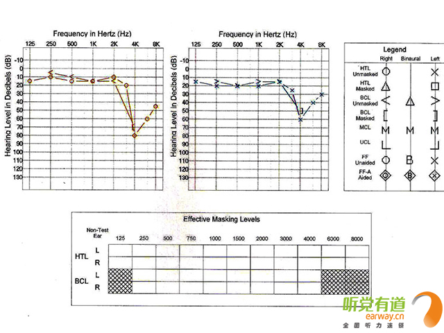 <span style="font-size:16px;"> 首先聽覺有道跟大家解釋一下純音測聽的定義以及臨床意義。純音測聽包括氣導(dǎo)聽閾測試(AC)和骨導(dǎo)聽閾測試(BC),以耳機(jī)及骨導(dǎo)振子給聲,反應(yīng)受試者在安靜環(huán)境下能夠聽到的各個頻率的最小聲音的聽力級(氣導(dǎo)頻率范圍125-8000Hz,骨導(dǎo)250-4000Hz)。它是目前能準(zhǔn)確反映聽敏度的主觀行為測試方法之一,在臨床上是最基本最重要的聽力檢查方法。</span></p><p><span style="font-size:16px;"><br /></span></p><p style="text-align: center;"><span style="font-size:16px;"><img src="/upfiles/201803010200415958.jpg" align="middle" alt="" /><br /></span></p><p style="text-align: center;"><span style="font-size:16px;"><br /></span></p><p><span style="font-size:16px;"> 先整體看一下聽力圖,它的橫坐標(biāo)是純音的頻率,縱坐標(biāo)表示的是聽力級(單位為db HL),從上往下看數(shù)字是變大的。0表示聽力零級,簡單地說就是科研人員測了很多聽力正常男女的聽力,以他們能聽到的最小聲音作為聽力零級。所以如果你的聽力是正常的話,聽力圖上的閾值曲線應(yīng)該在零附近浮動,如果你聽力超常,那就在0以上也就是為負(fù)值了。如果你聽力下降,那線就往下走,越往下就說明聽力損失得越多。從生活常識上理解,所謂聽閾聽閾,閾值越低表示你能聽到越小的聲音,聽力就越好,閾值越高,聽力越差。</span></p><p><span style="font-size:16px;"> 接著說一下聽力圖上的圈圈叉叉代表的意思。叉叉表示左耳的氣導(dǎo)聽閾,圈圈表示右耳氣導(dǎo),開口向左的尖括號表示左耳骨導(dǎo),開口向右的表示右耳骨導(dǎo)。旁邊的masked表示加掩蔽之后的聽力。</span></p><p><span style="font-size:16px;"> 為什么要加掩蔽呢?舉個例子:你右耳聽力比左耳好,當(dāng)你左耳給聲強(qiáng)度很大,會出現(xiàn)你左耳其實(shí)沒聽見但右耳偷聽到了的情況,這時你就會反應(yīng),但是這時你的反應(yīng)能代表左耳的聽閾嗎?肯定比你實(shí)際聽閾要好,所以測聽人員會在你右耳加噪聲,不讓你右耳偷聽左耳的聲音,這樣測出來的左耳聽力稱掩蔽之后的聽閾。左耳掩蔽之后的氣導(dǎo)用小正方形來表示。同理,右耳掩蔽用小三角形表示。骨導(dǎo)也需要掩蔽。左耳掩蔽后骨導(dǎo)用向左的方括號表示,右耳用向右的方括號表示。</span></p><p><span style="font-size:16px;"> 最后我們該如何分析聽力圖。簡單地說,氣導(dǎo)的傳聲路徑包括外中內(nèi)耳以及神經(jīng)部分,骨導(dǎo)只包括內(nèi)耳和神經(jīng)部分,因此出現(xiàn)骨氣導(dǎo)差則表明聽覺通路上有外中耳病變。考慮到各種誤差因素,一般認(rèn)為骨氣導(dǎo)相差10db HL屬于正常范圍。根據(jù)骨氣導(dǎo)的關(guān)系可以將聽力損失分為傳導(dǎo)性聽力損失、感音神經(jīng)性聽力損失以及混合性聽力損失。骨氣導(dǎo)差大于10,且骨導(dǎo)在正常范圍為傳導(dǎo)性聽損;骨氣導(dǎo)一致且都在正常范圍以外為感音神經(jīng)性聽損;骨氣導(dǎo)差大于10,骨導(dǎo)在正常范圍之外為混合性聽損。</span></p><p><span style="font-size:16px;"> 當(dāng)然,如果想進(jìn)一步定位聽力診斷結(jié)果,還需要結(jié)合其他的一些測試如聲導(dǎo)抗、ABR、耳蝸電圖、耳聲發(fā)射、40Hz、影像學(xué)檢查等。</span></p><p><span style="font-size:16px;"> 更多詳情請登錄www.dequnsm.cn。</span></p>" />
