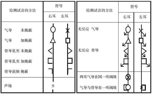橫坐標代表頻率,以倍頻程為單位分隔——請記住倍頻程的概念,它指兩個頻率間的間隔,高頻是相鄰低頻的兩倍;縱坐標代表強度。右耳氣導用紅色“○”標記,左耳用藍色“×” 標記,閾值就是頻率與強度的交叉點位置。比如某人左耳在250Hz處的聽閾是30dBHL,則在250Hz這一軸線上30dB HL中點劃一藍叉。30dB HL是聽閾,正常人的聽閾是-10dB HL~25dB HL,也就是說,這個人的聽力損失(也可稱做聽敏度的下降)只有5dB HL。</p><p> </p><center><img alt="" src="/upfiles/201906100159589704.png" width="600" height="373" /></center><p></p><p style="text-align: center;">國家統一聽力標記符號</p><p> 用聽力圖表示聽閾級時,應采用上表所給符號,對氣導相鄰點用直線連接,骨導用虛線連接。如在聽力計最大輸出級仍無反應,可在相應符號處垂直向下畫一箭頭,或在符號的下外角與垂直方向約成45o角向下畫一箭頭(即左耳符號箭頭向右,右耳符號箭頭向左)。無反應的符號應記在聽力圖上代表聽力計最大輸出的聽力級處。如用彩色筆記錄,右耳符號和連線為紅色,左耳符號與連線為藍色。從篩選測聽法得出的結果應清楚地照此表示出來。</p><p> 更多詳情請登錄聽覺有道助聽器www.dequnsm.cn</p>" />