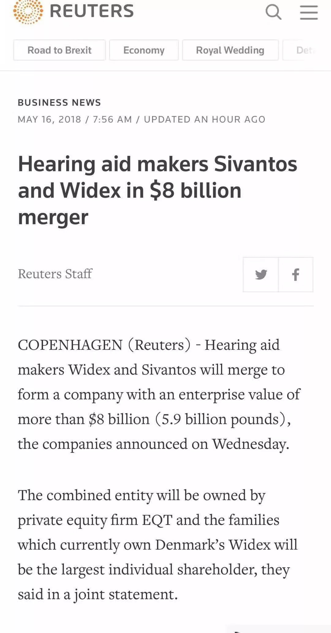 前段時間,唯聽和西萬拓的合并,終于被歐盟委員會批準。一個全新的聽力行業巨獸——WS Audiology,正在向世界亮出自己鋒利的爪牙。</p><p> 早在2007年,索諾瓦集團也有類似收購同行巨頭的意向,不過因反壟斷問題而被擱置了,沒有了下文。</p><p> 這次,唯聽和西萬拓的合并順利獲得批準,其中過程也不是很順利。</p><p> 2018年5月,唯聽和西萬拓正式向外界宣布,兩大聽力公司將要合并,引起較大反響。但同年10月,這次計劃中的合并腳步,突然停滯了,合并的申請撤銷,不過他們對外宣傳仍在積極進行合并。</p><p> 其實,對于業內人士來說,這兩間公司的成功合并,并不讓人覺得驚訝,不少人在合并申請撤銷的時段,都認為這個合并遲早成功,這只是時間問題。</p><p> 而現在,它們終于攜手跑向了終點。</p><p style="text-align: center;"><img src="/upfiles/2019031404035028.png" width="640" alt="" /><br /></p><p></p><p> 合并審查機構認為,這兩間公司的合并不違反壟斷法,對其他競爭對手也不會產生較大的惡劣影響,因而批準。按預計,雙方將在2019年的3月~5月完成交易,目前新公司的董事會成員已完成組建。</p><p> 唯聽和西萬拓的合并,無疑是強強聯手,這個新的巨頭正在帶著自己的野心和實力,準備向前方的索諾瓦集團(Sonova)和WDH集團(William Demant Holding)發起沖擊。</p><p> 這次合并后,WS Audiology將在全球超過125個國家擁有超過10000名員工,預估銷售額將達到19億美元以上,企業估值82.5億美元,每年的研發支出將超過1.2億美元,全球市場占有率達24%以上。</p><p> 助聽器的自身優勢,其根基還是在技術水平上。不可否認,現在這個合并后的公司,擁有著讓人不容小覷的科技硬實力。</p><p> </p><center><img src="/upfiles/201903140403368948.png" width="640" alt="" /><br /></center><p></p><p> </p><center><img src="/upfiles/201903140404159123.png" width="640" alt="" /><br /></center><p></p><p> 那么,這對助聽器行業影響大嗎?</p><p> 這次的合并,對助聽器廠商而言,有點“融合,碰撞,沖擊,改變”的感覺。當前的助聽器行業,規模小、利潤可觀。強強聯手,無非想成為一個“游戲改變者”,完成從游戲重要參與者到游戲大綱決定者的轉變。</p><p> 理想很美好,現實在努力,我們翹首以待。</p><p> 而對中國的助聽器經銷商而言,受到的沖擊要比助聽器廠商要少很多很多。</p><p> 一方面,目前的助聽器經銷商都是多品牌經營;另一方面,越來越多的經銷商已經在打造自己的專業服務品牌,并且取得市場的認可;它們有一群忠實的客戶,認的只是他們的服務品牌,而并非助聽器品牌!</p><p> 對助聽器消費者來說,這樣的合并新聞,更不能觸動他們的敏感神經。</p><p> 因為,對于消費者而言,他們最關心的永遠是助聽器的價格是否合適,是否有突破性的技術進展,售后的服務是否有足夠保障……</p><p> 試想一下,有多少助聽器使用者,能夠拼出助聽器的英文簡寫?說出自己的助聽器來自哪個國家?在世界排名如何?很多人能記住的,僅僅是自己佩戴的助聽器是否進口,哪個品牌,是不是高端的。而他們記得最清楚的,可能是在哪個服務中心里面驗配的,因為要定期保養和買助聽器配件。</p><p> </p><center><img src="/upfiles/201903140404287727.png" width="640" alt="" /><br /></center><p></p><p> 據稱,這是一個平等的“戰略合并”。新公司方宣布,將加速聽力產品技術創新,為市場打造個性化解決方案,利用數字平臺重新定義現有用戶和數百萬潛在聽障者所提供的專業服務。</p><p> 未來,它將掀起怎樣的波瀾呢?</p><p> 目前,中國聽力行業的溪水還在平緩流動,偶有幾處水花,泛起值得深思的微瀾。外資“有條不紊”悄然進入,國內企業積極自我修煉,未來誰主浮沉,時間會給答案。</p>" />