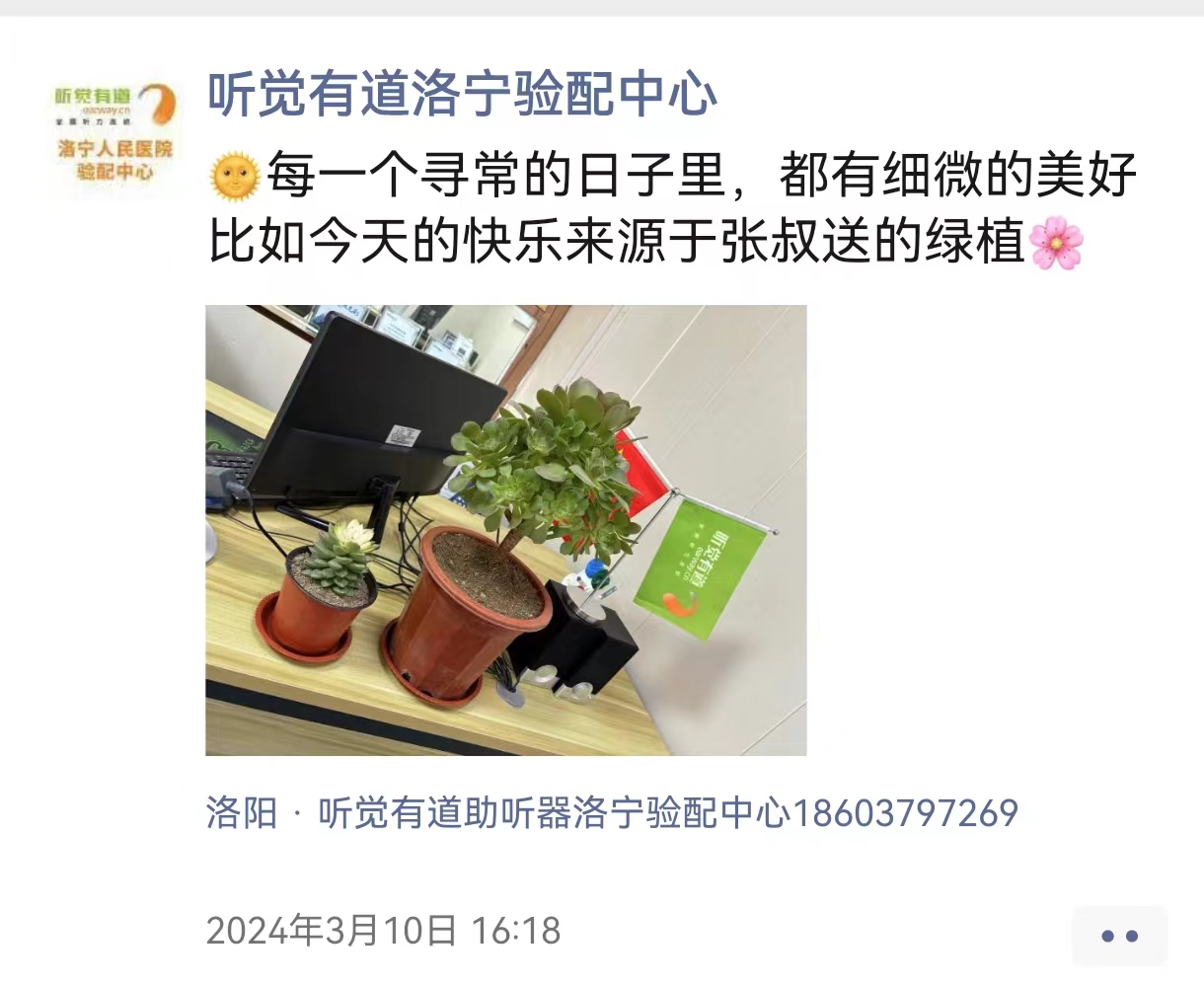 <span style="white-space:pre"> </span>又是一年春好處。<br /><br /> 每年春天,張叔的花攤上總是擺滿各種絢爛奪目的花兒。每一片花瓣,都像是一抹柔和的微笑,讓人感到平靜和溫暖。<br /><br /> <strong>張叔靠花草養家<br /></strong><br /> 張叔是個養花人,今年70歲,家住王東小區。<br /><br /> 張叔說,在兒子還很小的時候,自己沒有別的手藝,就是喜歡擺弄那些花花草草。<br /><br /> 經過他“伺候”過的花草,都開得特別好。當時他就有一個想法:不如拿它們來養家糊口吧。<br /><br /> 然而,那時家人和親戚都不太支持他這個想法,認為這是不務正業的。<br /><br /> 畢竟,在那個年代,柴米油鹽很貴,找個穩定正經的工作,順順當當地養活家人,才是最重要的。<br /><br /> “但是,養好花花草草也是一門職業技術??!”<br /><br /> 張叔下定決心,要把養花作為一生的工作。<br /><br /> 他開始每天鉆研各種養殖花草的資料,向別人請教怎樣養花種草,問大家都喜歡什么樣的花。<br /><br /> 張叔有一輛電動三輪車,無論是去縣城周邊,還是到遠點的地方趕集,他都會騎著三輪車,載著滿滿一車的花草過去。<br /><br /> 夏天的雨很大,他仍舊拉著一堆花草守在集市里。<br /><br /> 冬天的風很冷,他總在落日時分才踏上回家的路。<br /><br /> 日復一日,年復一年,家人們看到了張叔的熱愛與堅持,便不再反對了。<br /><br /> “不夸張地說,這些年我記的筆記,可以用堆積如山來形容!”<br /><br /> 說這句話時,張叔滿臉的驕傲。他不僅把花草養得很好,也靠它們把家人都養得好好的。<br /><br /></span><p><span style="font-size:16px;"> 也許,家人就是他心中最重要的“那些花兒”。</span></p><p><span style="font-size:16px;"><br /></span></p><p style="text-align: center;"><img src="/upfiles/202403150130547329.jpg" width="640" alt="" /><br /></p><p><br /></p><span style="font-size:16px;"> <strong>跨越數百里的信任</strong><br /><br /> 我們和張叔結識是在2023年。<br /><br /> 當時我們到大原做聽力科普宣傳,經過張叔的花攤。<br /><br /> 他戴著個帽子,不胖不瘦,個子高高的,愛說愛笑。<br /><br /> 作為助聽器驗配師,我們很容易就注意到他左耳戴著一臺耳背機。<br /><br /> 但他跟別人說話時,還是顯得很吃力。<br /><br /> 我們停下腳步,跟他聊天交流,了解他的聽力情況,希望能給他帶來一些力所能及的幫助。<br /><br /> 張叔的右耳因為從小中耳炎,現在一點聽力都沒有了。<br /><br /> 他左耳的聽力,也在十幾年前下降得厲害。<br /><br /> 左耳的耳背機是10年前在洛陽三院買的,之后一直沒有保養過。<br /><br /> 張叔見我們是專業配助聽器的,把助聽器拿給我們檢查。<br /><br /> 接過助聽器,我們發現它耳鉤里面有冷凝水,做了仔細的清潔保養,并給張叔講了一些日常保養維護助聽器的方法。<br /><br /> 為了助聽器更穩定的工作,我們也建議張叔定期到驗配中心進行保養,我們為聽損朋友提供免費服務。<br /><br /> 之后大半年,張叔有時間就會到我們聽覺有道洛寧人民醫院驗配中心保養助聽器,同時來聊聊家常。<br /><br /> 一般的助聽器使用壽命是5到8年,而張叔的助聽器戴了有10年,現在音質和功率都不太能滿足他現在的聽力狀況了。<br /><br /> 張叔想換一臺新的助聽器,并最終選擇了聽覺有道。<br /><br /> “我觀察了好久,對你們的為人處世,還有你們公司的品牌售后,都是比較認可的?!?lt;br /><br /> 2023年10月,我們邀請張叔到店參加專家日活動,體驗新款的助聽器。<br /><br /> 那段時間,張叔去了西安,參加親戚的婚禮。<br /><br /> 出于對我們的支持和信任,張叔讓兒子連夜載他從西安回洛寧,橫跨幾百公里。<br /><br /> 第二天,他準時到店參加活動,并且配了一臺Beltone Rely系列助聽器。<br /><br /> 2024年3月10日,張叔送來了兩盆親手種的綠植,讓我們在這個春天收獲了一份獨特的美好。<br /></span><p><span style="font-size:16px;"><br /></span></p><p style="text-align: center;"><span style="font-size:16px;"><img src="/upfiles/202403150131189662.jpg" width="640" alt="" /><br /></span></p><p><span style="font-size:16px;"><br /></span></p><span style="font-size:16px;"> <strong>熱愛永不改變</strong><br /><br /> 有一天,張叔來保養助聽器。<br /><br /> 我問他,現在生活好起來了,兒子有了自己的工作,他也已是古稀之年,以后還會繼續賣花嗎?<br /><br /> 張叔點了點頭,朗聲笑了起來。<br /><br /> “當然會啊!我還是很喜歡養花,一直都沒有改變過!”<br /><br /> 文章來源:聽覺有道洛寧人民醫院驗配中心</span>" />
